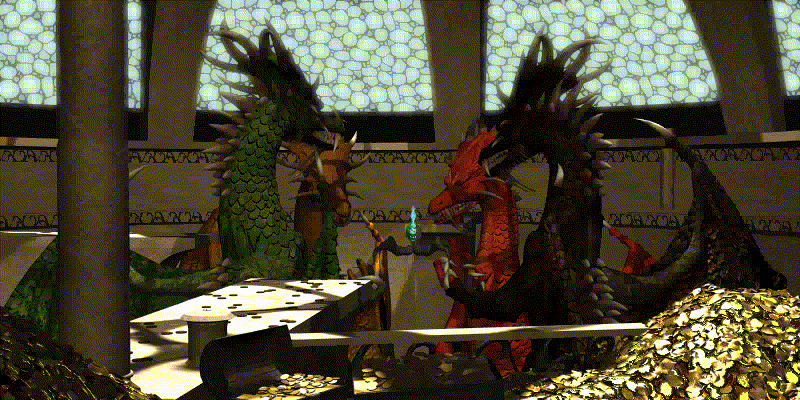 A Green Dragon and a Gold Dragon appear at the beginning of the Blood of the Dragon Father scenario from the Dragon's Blood campaign in Armageddon's Blade, and the Valley of the Dragon Lords scenario in the Elixir of Life campaign in The Shadow of Death.